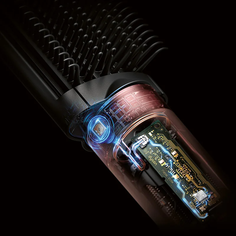 شتابسنج (Accelerometer): حرکت را شناسایی میکند تا به شما در حالتدهی کمک کند. زمانی که مو به دور سری پیچیده شود، بهطور خودکار پروسه فر تعریف شده در برنامه MyDyson را فعال میکند تا حالتدهی سریعتر انجام شود.