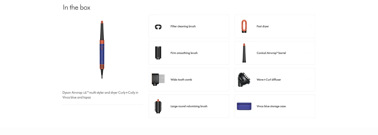 استایلر هوشمند Dyson Airwrap i.d در رنگ خاص Vinca Blue/Topaz، تجربهای شخصیسازیشده برای صافکردن، فرکردن و حجمدادن به مو، بدون آسیب حرارتی.