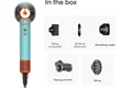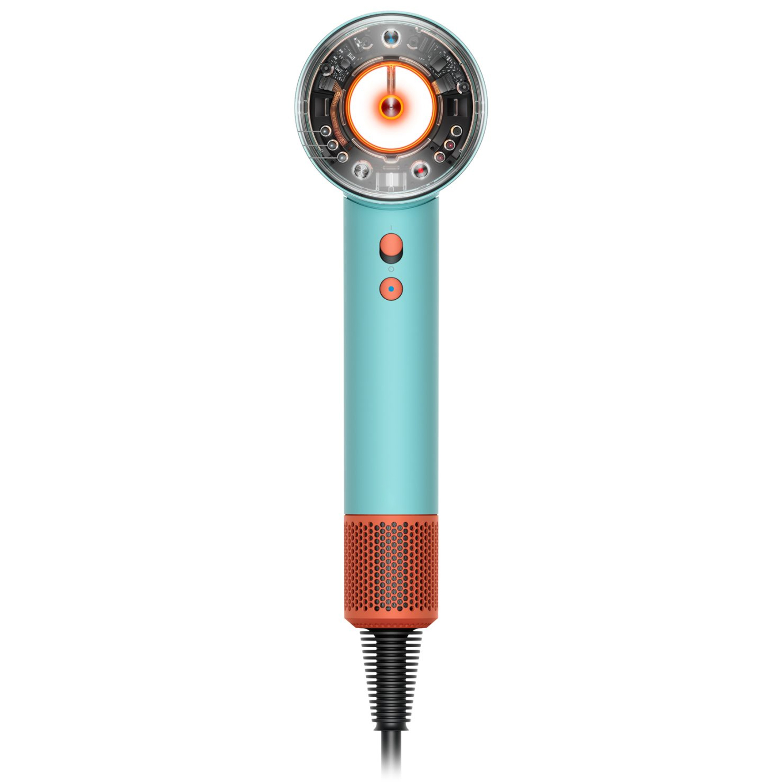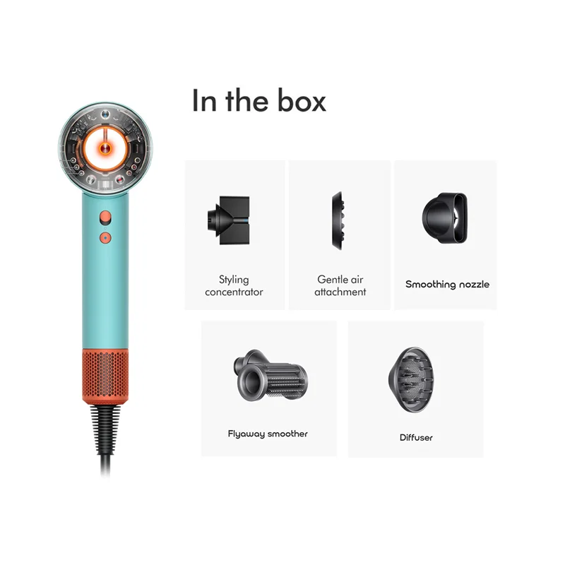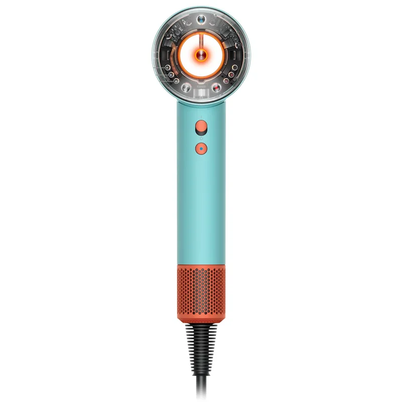 سشوار برس دار حالت دهنده دایسون مدل HD16 رنگ آبی فیروزه ایی با جزئیات نارنجی