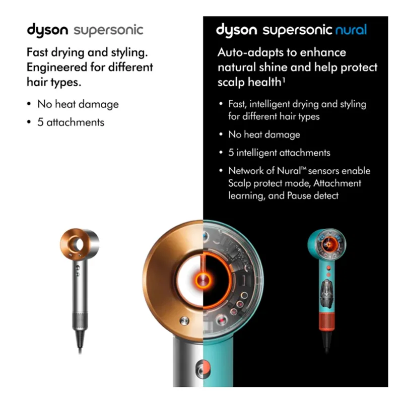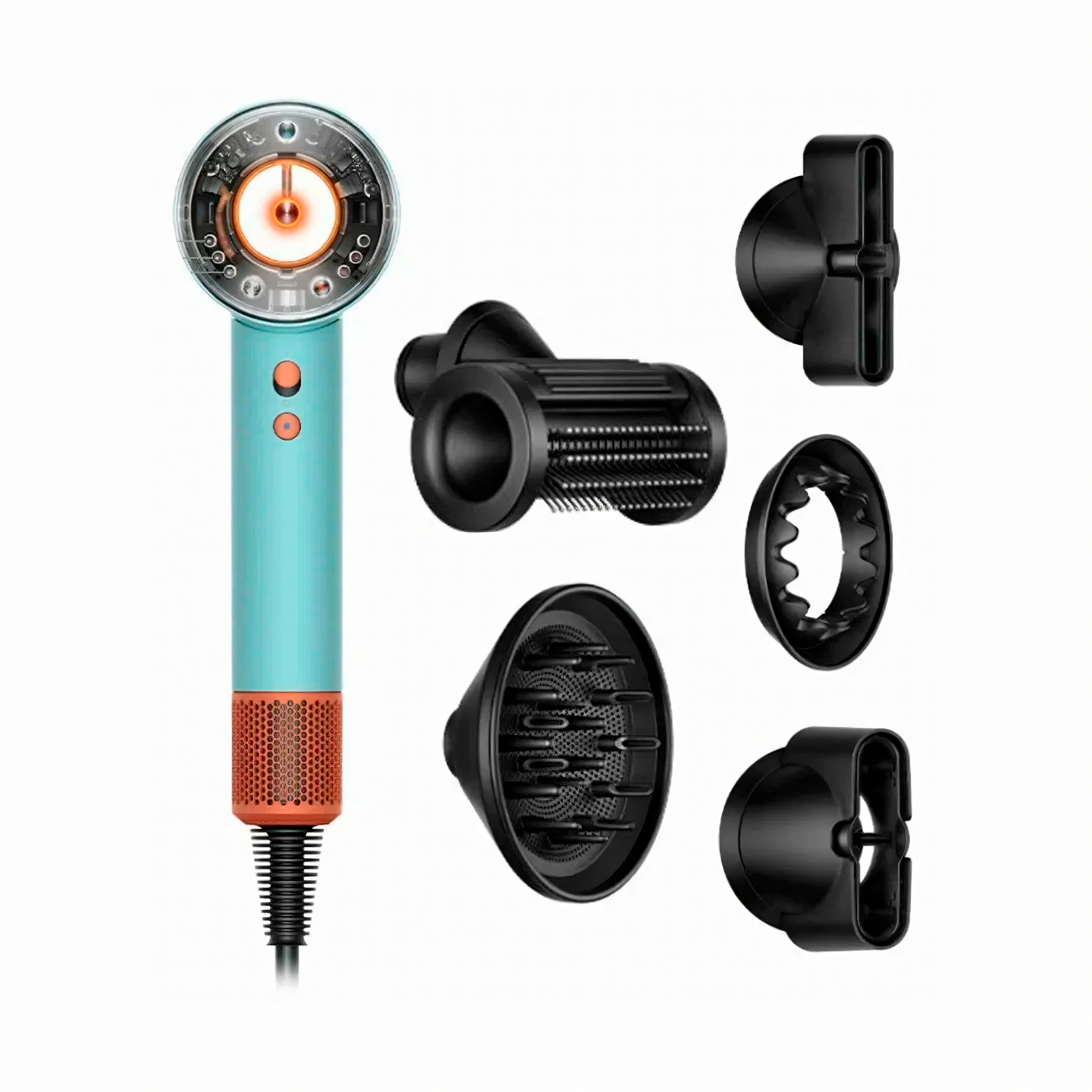برند دایسون یکی از مطرح ترین و بهترین برندهای روز دنیا در تولید لوازم برقی باکیفیت است که با سشوارهای قوی و با کیفیت و همچنین با طراحی زیبای خود شناخته میشود. این شرکت همواره در تلاش است با حفظ کیفیت در محصولات خود میان برندهای دیگر منحصر به فرد بوده و امضای خود را به واسطه زیبایی ظاهری بر روی محصولاتش حفظ کند. سشوار دایسون مدل Supersonic nural یکی از محصولات این برند بوده که با با فناوری سریع و هوشمند بدون گرمای شدید، یک جت هوای کنترل شده با فشار بالا و سرعت بالا برای خشک کردن سریع مو ایجاد میکند. این سشوار دارای پنج سری مختلف جهت کاربردهای متفاوت است که برای حالت دادن و خشک کردن مو استفاده میشود. این سشوار برای انواع مو از جمله موهای فر و حالتدار و همچنین صاف و لخت قابل استفاده است و هیچ گونه آسیبی به موهای شما نمیزند.