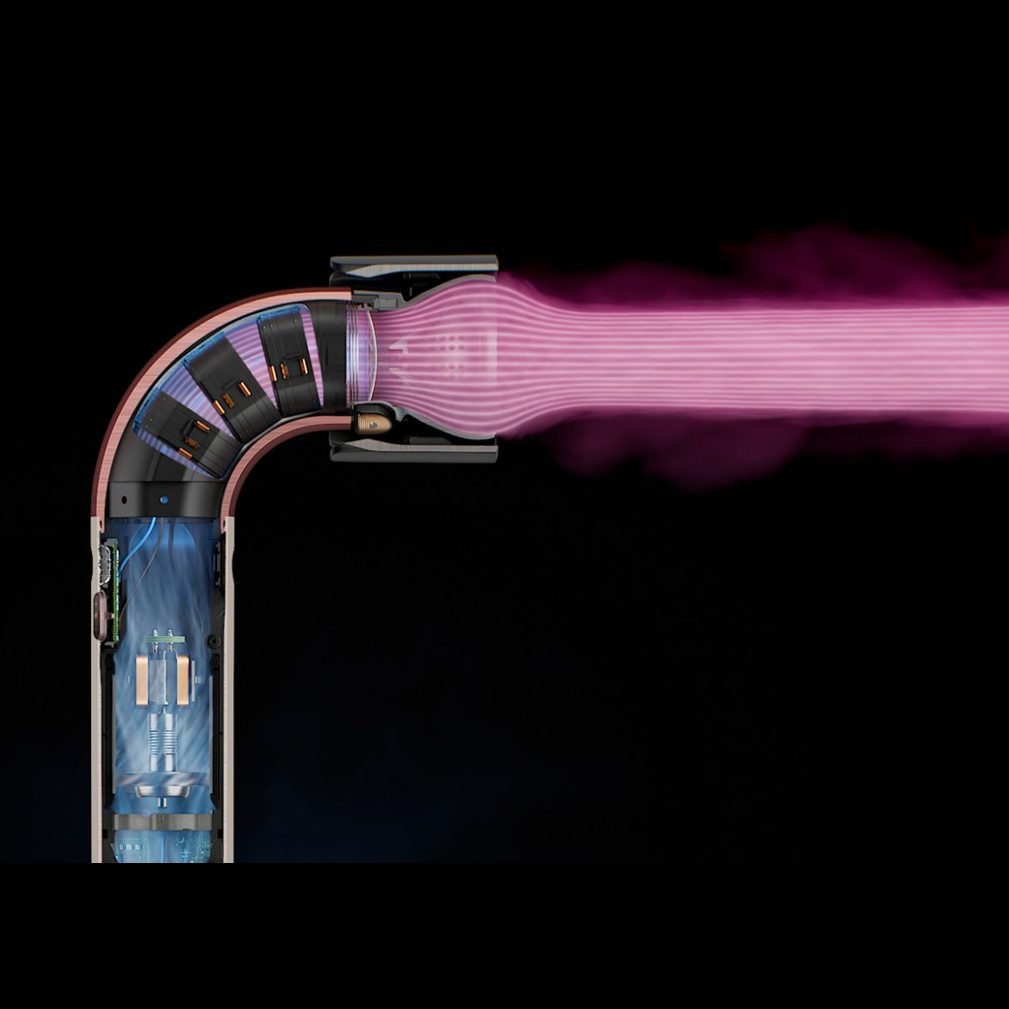 سشوار حرفه ای سالنی Dyson Supersonic r اولین دستگاه منحنی دایسون در یک سشوار که با جریان هوای قدرتمند موهارا ساده و یکنواخت گرم می کند و حرارت می دهد.سشوار Supersonic r سبکترین، کوچکترین و دقیقترین سشوار Dyson است که با فناوری جدید، موتور Dyson Hyperdymium ساخته شده .مهندسان دایسون موظف شدند کوچکترین سشوار را با دقت و تمرکز بسیاری بسازند. این به معنای افزایش چند برابری وظیفه ی اصلی در هر سشوار یعنی گرم کردن و خشک کردن است.فعالیت موتور و اتصالات و حتی مهندسی مجدد ماشینی جهت تجربه ای عالی برای حرفه ای ها در یک فرم کاملاً جدید بازبینی شده است .سشوار حرفه ای Supersonic r قدرت مانور بیشتری دارد ابزاری چابک تر برای مقابله با شکایات رایج در جامعه آرایشگران - بازوهای دردناک، موهای کسل کننده و آسیب شدید حرارتی می باشد. دستگاه دارای یک پوشش نایلونی سخت است که با فایبرگلاس تقویت شده بنابراین سبک و قوی ست و طول عمر بالایی دارد.درست مانند بقیه دستگاه های مراقبت از موی Dyson، سشوار حرفه ای Supersonic rمجهز به کنترل هوشمند حرارت است. این دستگاه دارای سنسوری هوشمند است که دمای هوا را بیش از 20 بار در ثانیه اندازهگیری میکند تا از آسیب شدید گرما به موها جلوگیری کند و از درخشش طبیعی آن محافظت کند. Supersonic r نه تنها استایل فوق العاده ای ایجاد می کند، بلکه به حفظ سلامت مو نیز کمک می کند.سشوار حرفه ای Supersonic r همچنین دارای حسگرهای شناسایی RFID در هر اتصال است که با سشوار ارتباط برقرار می کند و به طور خودکار و ماهرانه فعالیت موتور و گرما را تنظیم می کند تا جریان هوا و دمای مطلوبی را به شما ارائه دهد. این قابلیت تنظیم، متناسب با انواع سری دستگاه و مدل های مو متفاوت می باشد.به عنوان مثال، دیفیوزر روی جریان کم و دمای پایین تنظیم شده است تا موخوره را کاهش دهد و فرها را بدون بر هم زدن الگوی مارپیچ حالت بدهد، در حالی که حالت خشک کردن از حداکثر توان گرما و جریان استفاده می کند تا زمان خشک شدن را به حداقل برساند و جریان هوا را کنترل Supersonic r با متعادل کردن وزن و حجم و کنترل هوشمند دما و فشار ،در توسعه صنعت ساخت سشوار ،نقش اساسی داشته است.با توجه به شکل جدیدی که طراحی شده، مهندسان موظف شدند فناوری سشوار را مجددا مهندسی کنند تا اندازه را کاهش دهند و در عین حال کارایی را افزایش دهند.