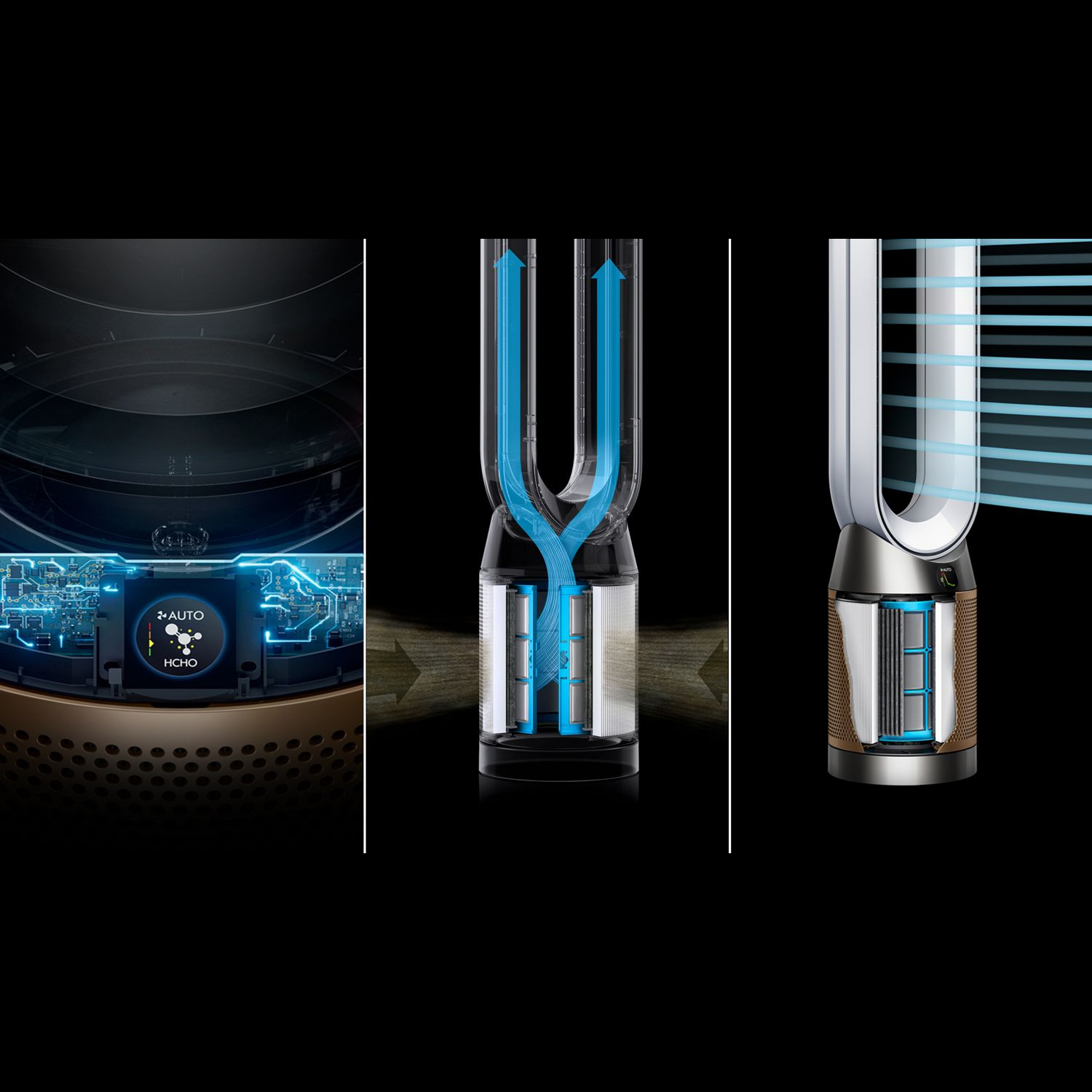 دستگاه Dyson Purifier Cool Formaldehyde ترکیبی از تصفیهکننده هوا و فن خنککننده است که برای ارتقاء کیفیت هوای محیطهای داخلی طراحی شده است. این دستگاه با فیلتر HEPA H13 و فیلتر تقویت شده کربن فعال K-Carbon، قادر است ۹۹.۹7٪ از ذرات معلق، آلرژنها و گازهای مضر را جذب کند. ویژگی برجسته آن، توانایی حذف فرمالدهید بهطور مداوم است که با فناوری اختصاصی، این ماده را به گازهای بیضرر تبدیل میکند. دستگاه تصفیه هوا مدل TP12 در مقایسه با مدل های قبل از خود قابلیت جذب و تخریب نیتروژن تا 50 درصد بیشتر را دارد.با استفاده از فناوری Air Multiplier، هوای تصفیهشده بهطور یکنواخت در اتاق پخش میشود. این دستگاه همچنین از طریق اپلیکیشن MyDyson و دستیارهای صوتی قابل کنترل است و طراحی آن بهگونهای است که برای استفاده در خانههای با کودکان و حیوانات خانگی کاملاً ایمن است.