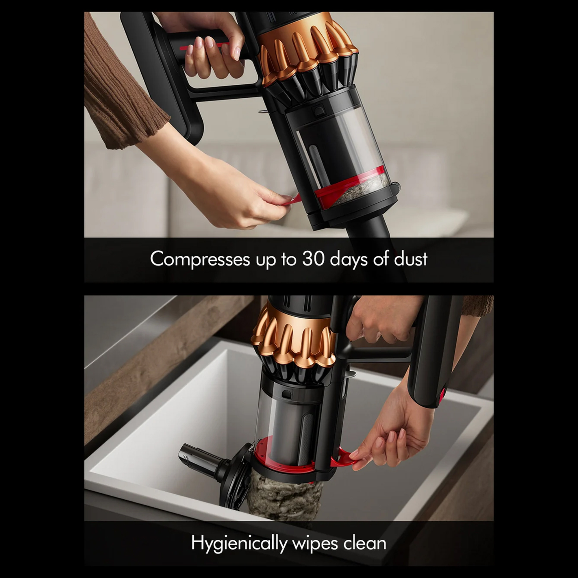 مخزن جدید CleanCompaktor™: فشردهسازی برای نگهداری گردوغبار ۳۰ روز - مخزن CleanCompaktor™ دایسون در حین تمیز کردن گردوغبار و زباله را فشرده میکند تا ظرفیت افزایش یابد.
