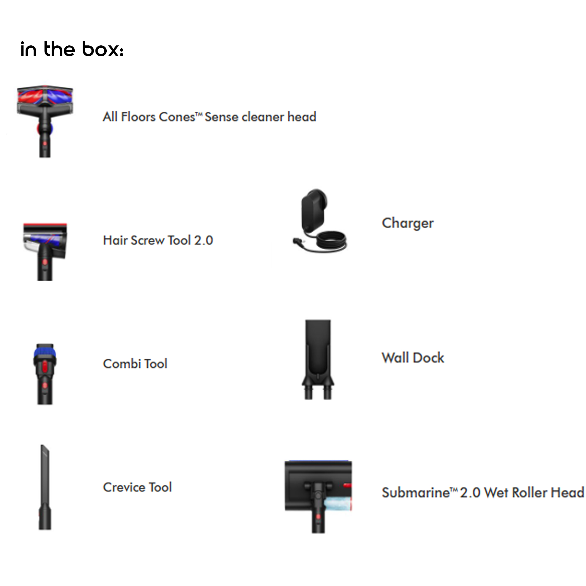 ابزار موی پیچخورده و تابیده 2.0: برس مخروطی موتوردار، موهای مقاوم روی تخت حیوانات خانگی، خودرو و پلهها را جدا و جمعآوری میکند. نوار لاستیکی اضافه برای نفوذ عمیقتر در فرش و افزایش قدرت تمیزکاری لبهی جلو دارد. همچنین نوارهای مخصوص فرش مانع از گیرکردن در مبلمان نرم مانند کوسنها میشود.
