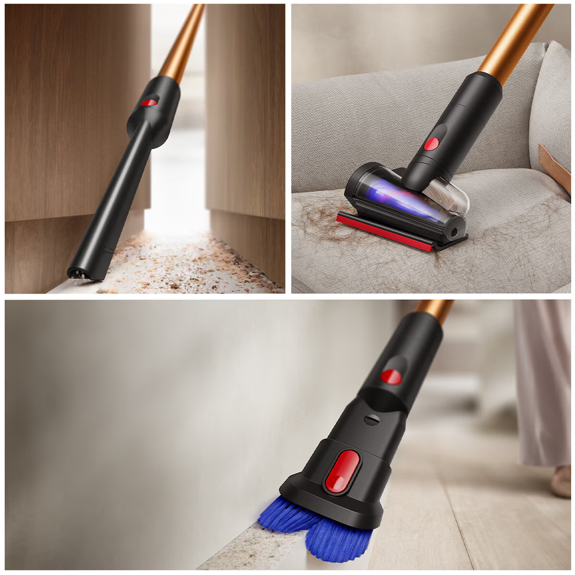 ابزارهای هوشمند: جاروبرقی بهصورت خودکار ابزار و سری متصلشده را شناسایی کرده و قدرت مکش را بسته به نیاز تنظیم میکند تا انرژی حفظ شود.