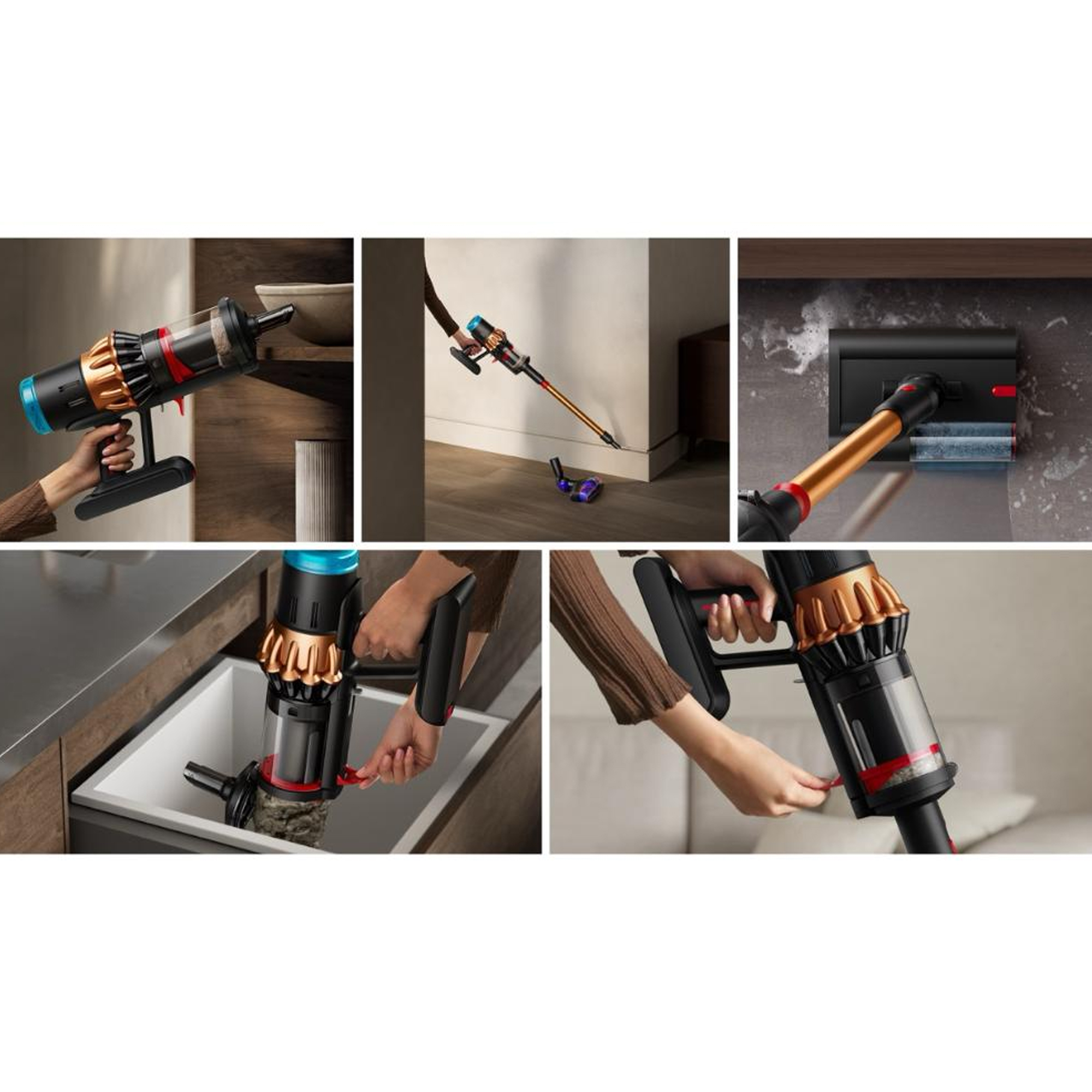 سیستم جداسازی چرخهای پویا (Dynamic Cyclones): چرخههای دایسون گردوغبار و زبالهها را جذب و جدا میکنند تا هیچ افت مکشی رخ ندهد. در حالت قدرت یا حداکثر توان مجموعهای اضافی از چرخهها فعال میشوند تا قدرت مکش افزایش یابد — قدرت بیشتر دقیقاً زمانی که به آن نیاز دارید.